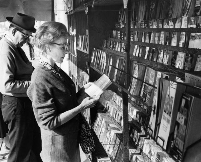 Popular pastime: Browsing among the paperbacks - Mrs. Barbara Brooks (foreground), 5852 Coldwater Canyon Ave."
